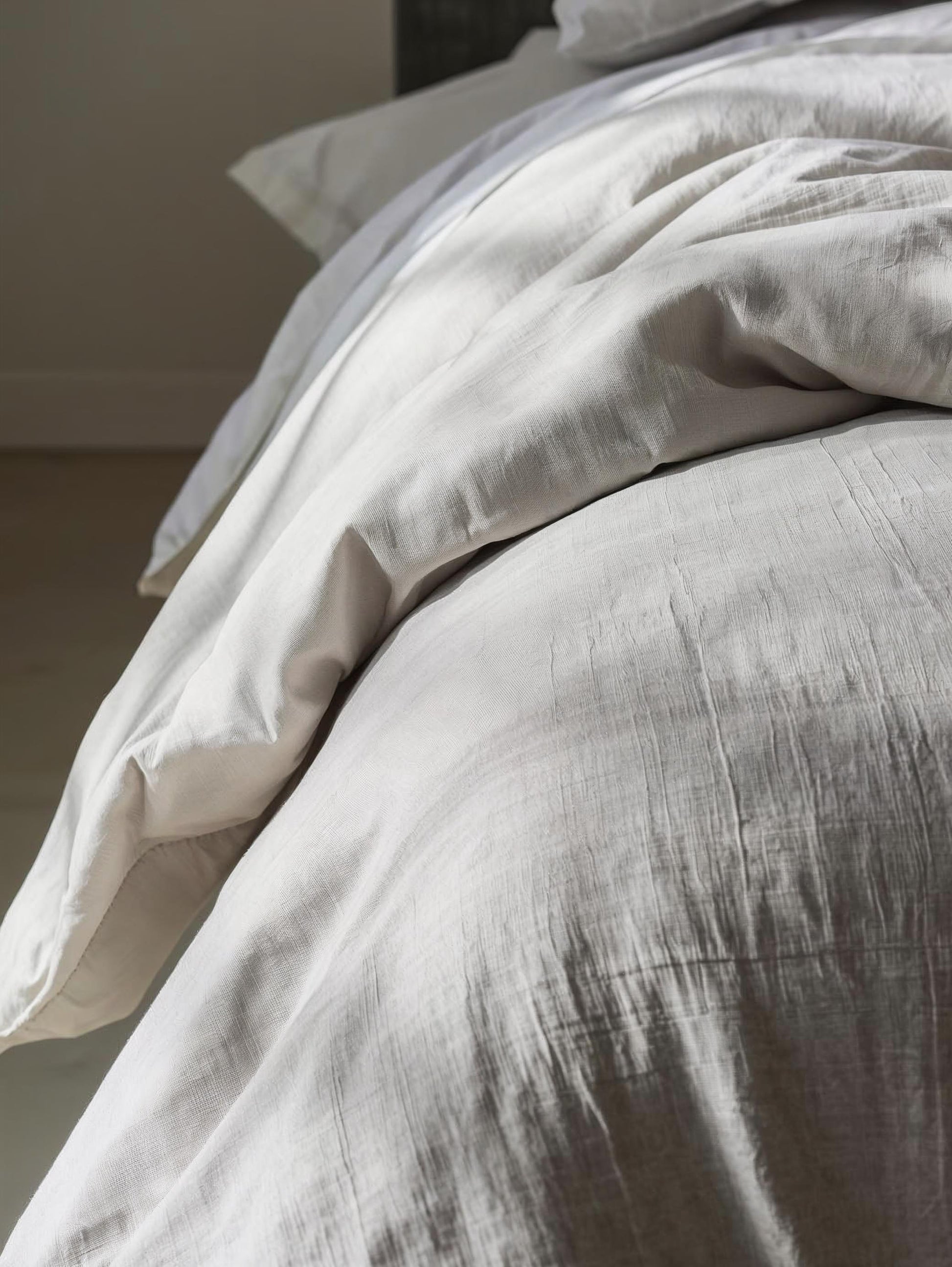 Each set includes a linen quilt cover and two matching pillowcases, pre-washed for softness, texture, and effortless drape. Naturally breathable and temperature-regulating, Pebble Grey linen keeps you cool in summer and cozy in winter — softening beautifully with every wash.